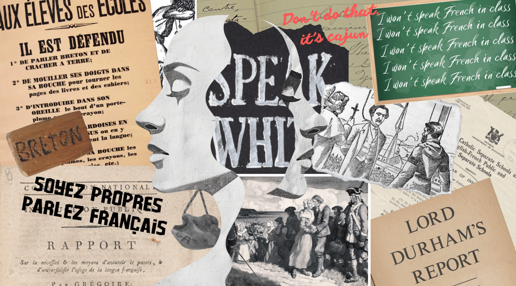 Les Acadiens, déportés afin de céder leur place à ceux qui méritaient les parcelles de terre, ceux qui parlaient la bonne langue. Les Manitobains mis à l’écart et méprisés pour avoir osé se mêler aux autochtones présents sur place, privés de la moindre éducation dans leur langue pendant près d’un siècle.